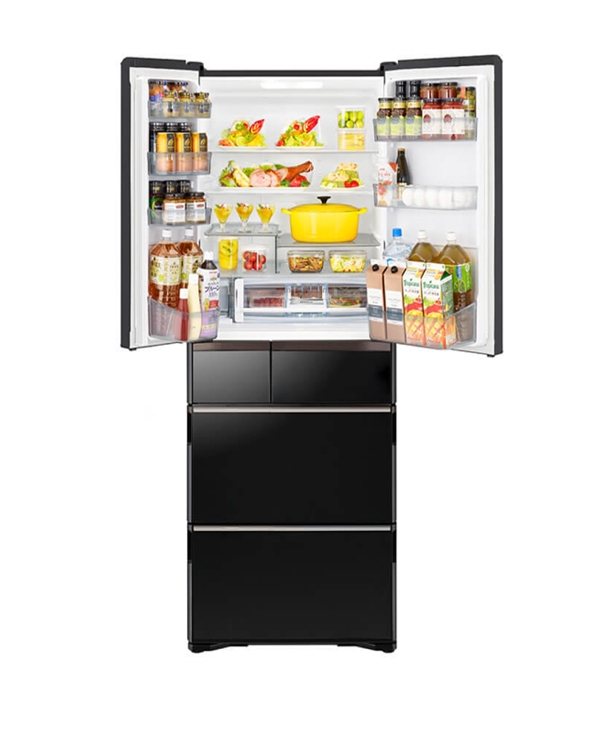 Hitachi R-WX620KV có kiểu dáng tủ lạnh Multi Door hiện đại, trang bị 6 cánh cửa cho phép bạn đóng mở, đặt và lấy thực phẩm ra ngoài tủ thuận tiện.