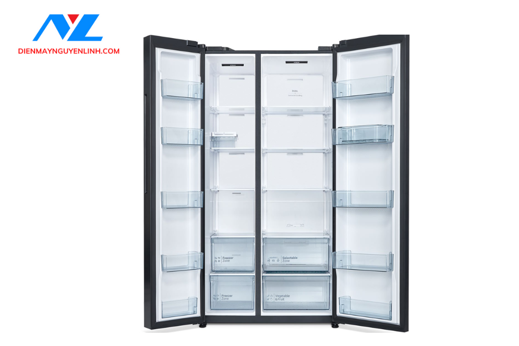 Thiết kế này giúp không gian bên trong luôn gọn gàng, dễ bố trí thực phẩm, đồng thời tăng khả năng tận dụng dung tích tủ.