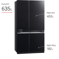 Tủ lạnh MR-LA78ER-GBK có dung tích sử dụng lên đến 635 lít trong đó ngăn lạnh phía trên 453 lít, ngăn đông 182 lít phía dưới.
