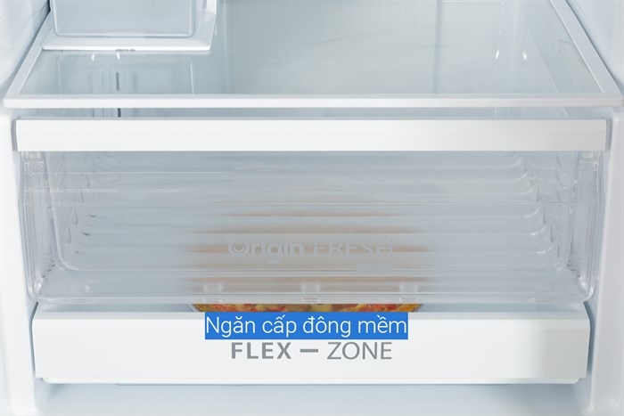 - Ngăn cấp đông mềm Flex-zone -1°C: bảo quản được thịt, cá trong 3 đến 4 ngày mà không cần rã đông, chế biến tiện lợi trong khi vẫn giúp giữ được nguyên hương vị. Ngăn chứa này còn giúp làm lạnh thức uống nhanh chóng, thiết kế có thể đổi vị trí tùy thích.