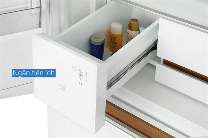 - Ngăn lạnh được trang bị các kệ, khay kính chịu lực có độ bền cao, dễ dàng lau dọn. Bên trong được chia làm nhiều ngăn như ngăn rau, ngăn tiện ích, ngăn linh hoạt. Các ngăn được thiết kế dạng ngăn kéo kín giúp người dùng dễ dàng sắp xếp, lấy và đặt thực phẩm.
