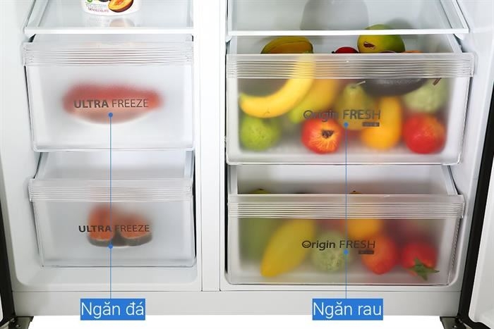 - Tủ lạnh có các hộc chứa thực phẩm tươi sống riêng biệt, điều này giúp hạn chế lẫn mùi thực phẩm, bảo quản thức ăn tươi ngon hơn.