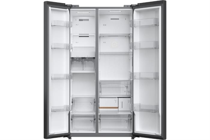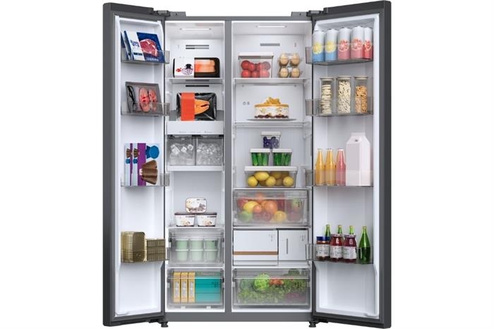 - Kiểu dáng Side by Side 2 cánh mở đối xứng, giúp thao tác thoải mái và tăng tính hiện đại cho không gian bếp.