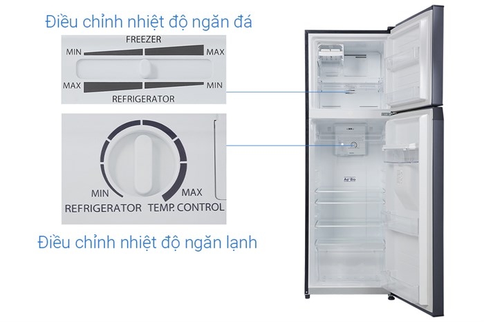 Với dung tích đến 249 lít gồm ngăn đá 61 lít và ngăn lạnh 188 lít, cùng tích hợp kính chịu lực các ngăn, giúp bạn thoải mái trữ thực phẩm thật tiện lợi. Đồng thời dung tích này hoàn toàn phù hợp cho gia đình có từ 2-3 thành viên.