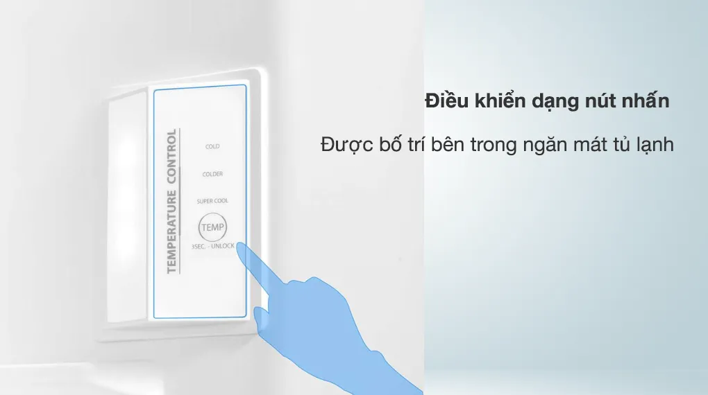 Bảng điều khiển được thiết kế dạng nút nhấn, dễ dàng thao tác và sử dụng. Hơn nữa, nó còn được bố trí phía bên trong tủ lạnh, tránh trẻ nhỏ nghịch phá.