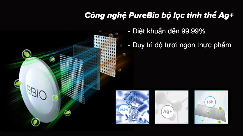 Công nghệ PureBio bộ lọc tinh thể Ag+: Sử dụng bộ lọc bằng gốm sứ (ceramic) được thiết kế dạng tổ ong, đồng thời nhúng tinh thể Bạc Ag+ và than hoạt tính.